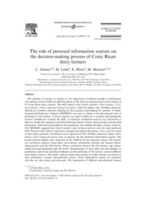 Solanoa, C.; Leon, H.; Perez, E.; Herrero, M. 2003. The role of personal information sources on the decision-making process of Costa Rican dairy farmers. Agricultural Systems. 76(1): 3-18