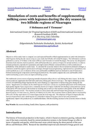 Simulation of costs and benefits of supplementing milking cows with legumes during the dry season in two hillside regions of Nicaragua