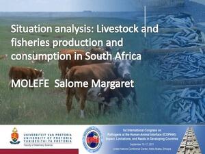 Molefe, S.M., McCrindle, C.M.E., Botha, C.J., Makita, K. and Grace, D. 2011. Situation analysis: Livestock and fisheries production and consumption in South Africa. Presented at the First International Congress on Pathogens at the Human-Animal Interface (ICOPHAI), Addis Ababa, Ethiopia, 15-17 September 2011. Pretoria: University of Pretoria
