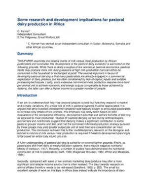 Examines the relative merits of milk versus meat production by African pastoralists. Discusses the implications for livestock development policy.