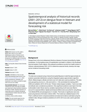 Bett, B., Grace, D., Hu Suk Lee, Lindahl, J., Hung Nguyen-Viet, Phuc Pham-Duc, Nguyen Huu Quyen, Tran Anh Tu, Tran Dac Phu, Dang Quang Tan and Vu Sinh Nam. 2019. Spatiotemporal analysis of historical records (2001–2012) on dengue fever in Vietnam and development of a statistical model for forecasting risk. PLOS ONE 14(11): e0224353.
