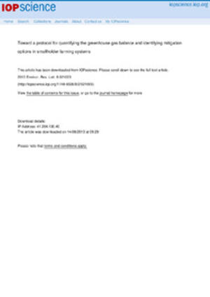 Rosenstock, T.S., Rufino, M.C., Butterbach-Bahl, K. and Wollenberg, E. 2013. Toward a protocol for quantifying the greenhouse gas balance and identifying mitigation options in smallholder farming systems. Environmental Research Letters 8(2): 021003.