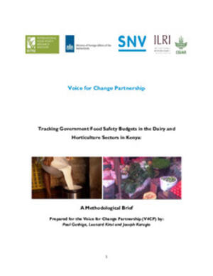Guthiga, P., Kirui, L., Karugia, J. 2020. Tracking government food safety budgets in the dairy and horticulture sectors in Kenya: A methodological brief. Prepared for the Voice for Change Partnership (V4CP). Nairobi, Kenya: ILRI.