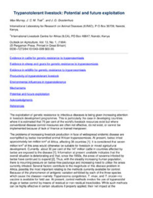 Murray, M., Trail, J.C.M. and Grootenhuis, J.G. 1984. Trypanotolerant livestock: Potential and future exploitation. Outlook on Agriculture 13: 43 - 51.