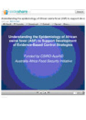 Bishop, R. 2011. Understanding the epidemiology of African swine fever (ASF) to support development of evidence-based control strategies. Presented at the African Swine Fever Diagnostics, Surveillance, Epidemiology and Control Workshop, Nairobi, Kenya, 20-21 July 2011. Nairobi, Kenya: ILRI.