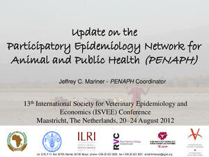 Mariner, J.C. 2012. Update on the Participatory Epidemiology Network for Animal and Public Health (PENAPH). Presented at the 13th International Society for Veterinary Epidemiology and Economics (ISVEE) Conference Maastricht, The Netherlands, 20-24 August 2012. Nairobi, Kenya: ILRI.