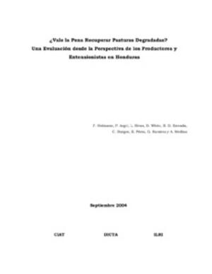 Holmann, F.; Argel, P.; Rivas, L.; White, D.; Estrada, R.D.; Burgos, C.; Pérez, E.; Ramírez, G.; Medina, A. 2004. ¿Vale la pena recuperar pasturas degradadas? Una evaluación de los beneficios y costos desde la perspectiva de los productores y extensionistas pecuarios en Honduras. Documento de Trabajo no. 196. Cali (Colombia): CIAT