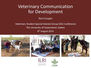Cooper, T. 2014. Veterinary communication for development. Presented at the Veterinary Student Special Interest Group (SIG) Conference, University of Queensland, Gatton, Australia, 6 August 2014. Nairobi, Kenya: ILRI.