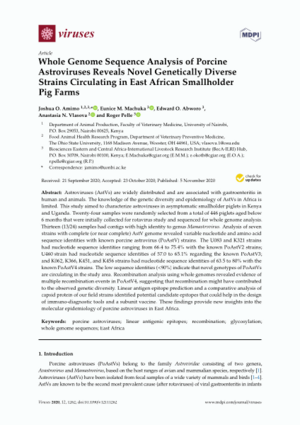 Amimo, Joshua O.; Machuka, Eunice M.; Okoth, Edward A.; Vlasova, Anastasia N.; Pellé, Roger. 2020. Whole Genome Sequence Analysis of Porcine Astroviruses Reveals Novel Genetically Diverse Strains Circulating in East African Smallholder Pig Farms. Viruses 12: 1262