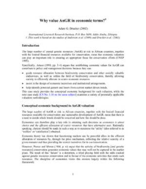 Drucker, A.G. 2002.Why value animal genetic resources (AnGR) in economic terms? AGTR Case Study. Nairobi, Kenya: ILRI.