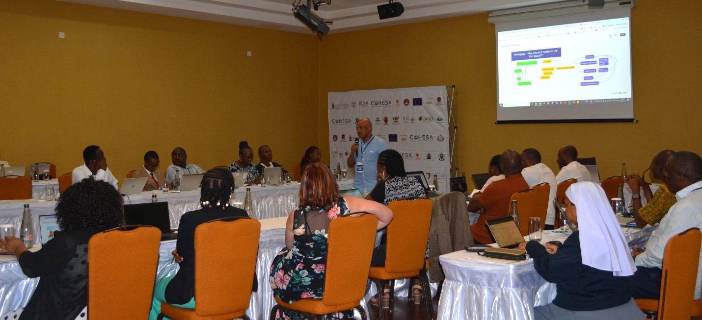 The one-week training, held in Kampala, Uganda from 7-11 July 2025 and organized by the Capacitating One Health in Eastern and Southern Africa (COHESA) project and University of Pretoria aimed to address gaps in delivery of One Health education by equipping lecturers with tools and skills that would enable them to capacitate their students to teach One Health principles. The workshop addressed this gap by demonstrating and engaging participants in various strategies to teach (pedagogy) and to engage learners by using activities (think-pair share; jigsaw) and technology (Pear Deck, Kahoot, Padlet) to facilitate learning.
