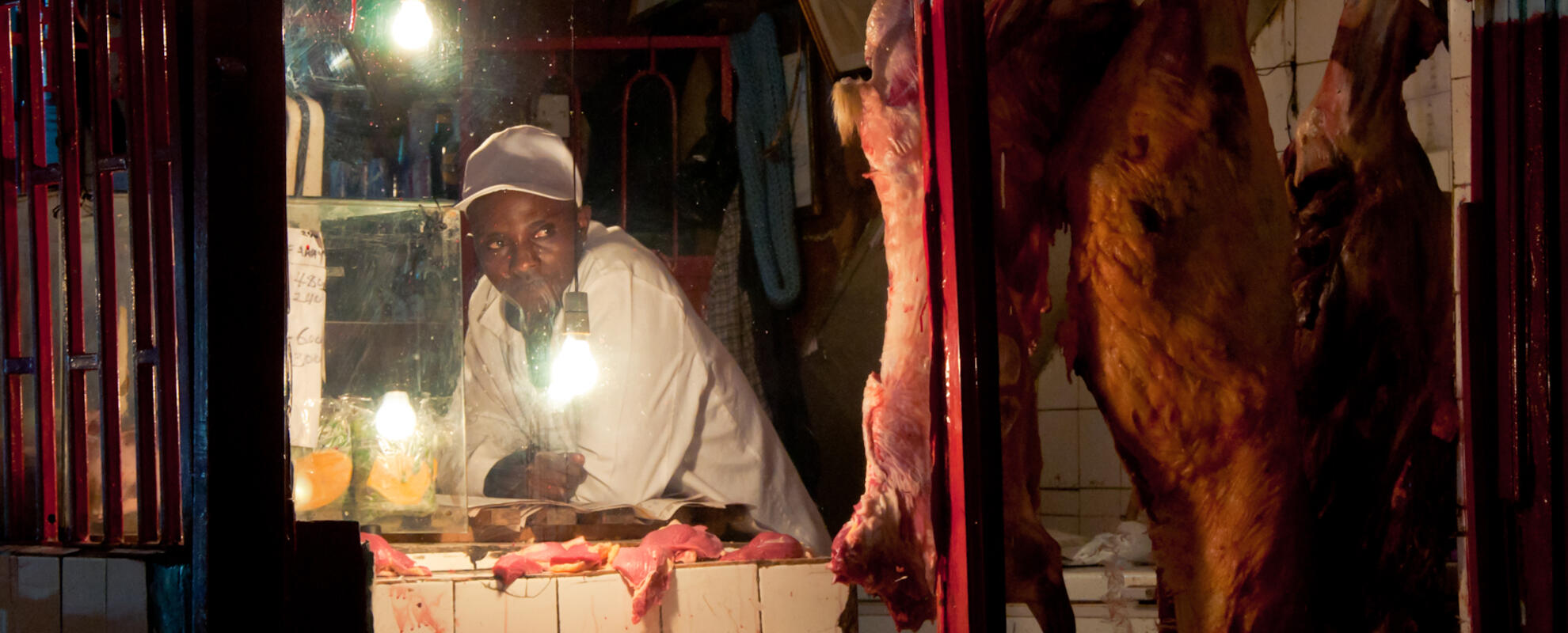 A Nairobi butcher shop after nightfall (photo credit: Flickr/Hendrik Terbeck).