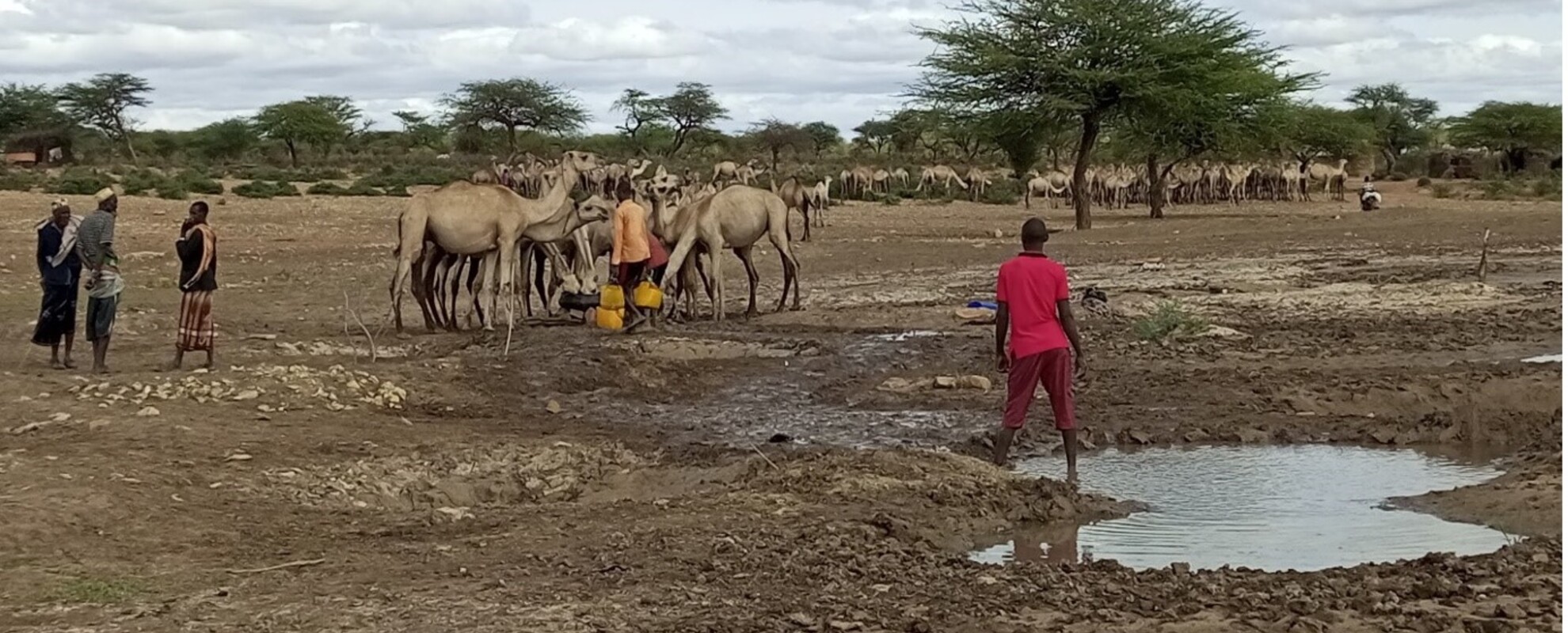 Photo: In the Osobey-Globo rangeland unit in the Filtu Woreda of Ethiopia, supported by the PRM project, a pastoralist waters his camels from the pond during the short dry season. Photo by Mohammed Said/ILRI.