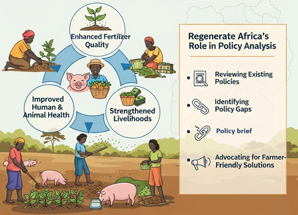 In this context, Regenerate Africa, with support from ILRI is currently leading a policy review and gap analysis of manure management and associated environmental and risk management in Uganda. This is implemented under the CIRcularity of Nutrients in Agroecosystems and co-benefits on animal and human health (CIRNA) Project. The project aims at advancing the development, assessment, and promotion of farmer-approved, field-tested manure management practices for smallholder mixed crop-pig systems in Uganda that ensure better organic fertilizer quality, health and safety for humans, animals, and the environment, and improved livelihoods.